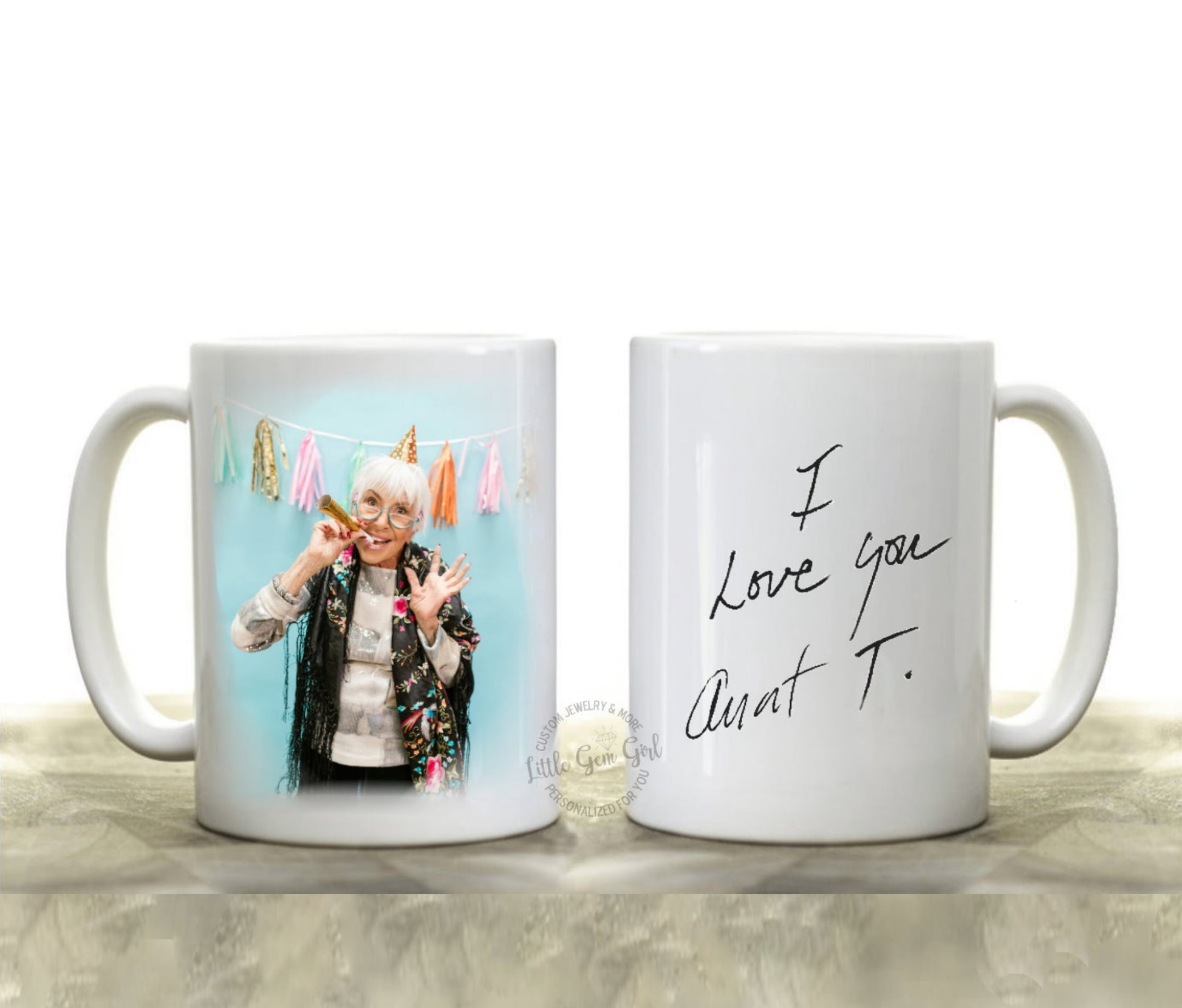 Personalized Handwriting and Photo Double Sided Coffee Mug - Large 15oz Custom Signature Memorial Cup