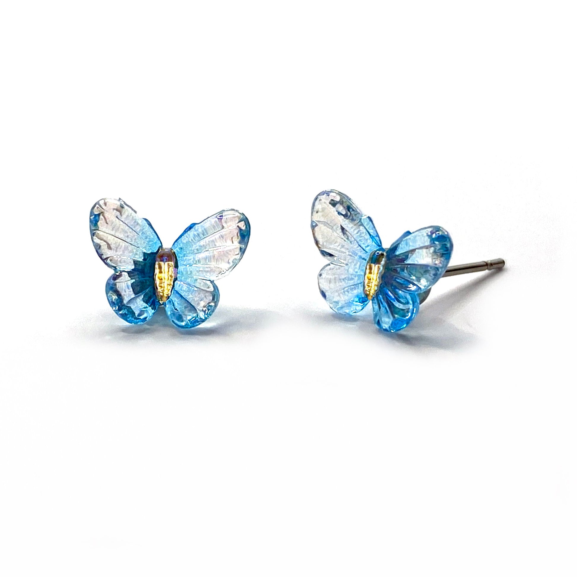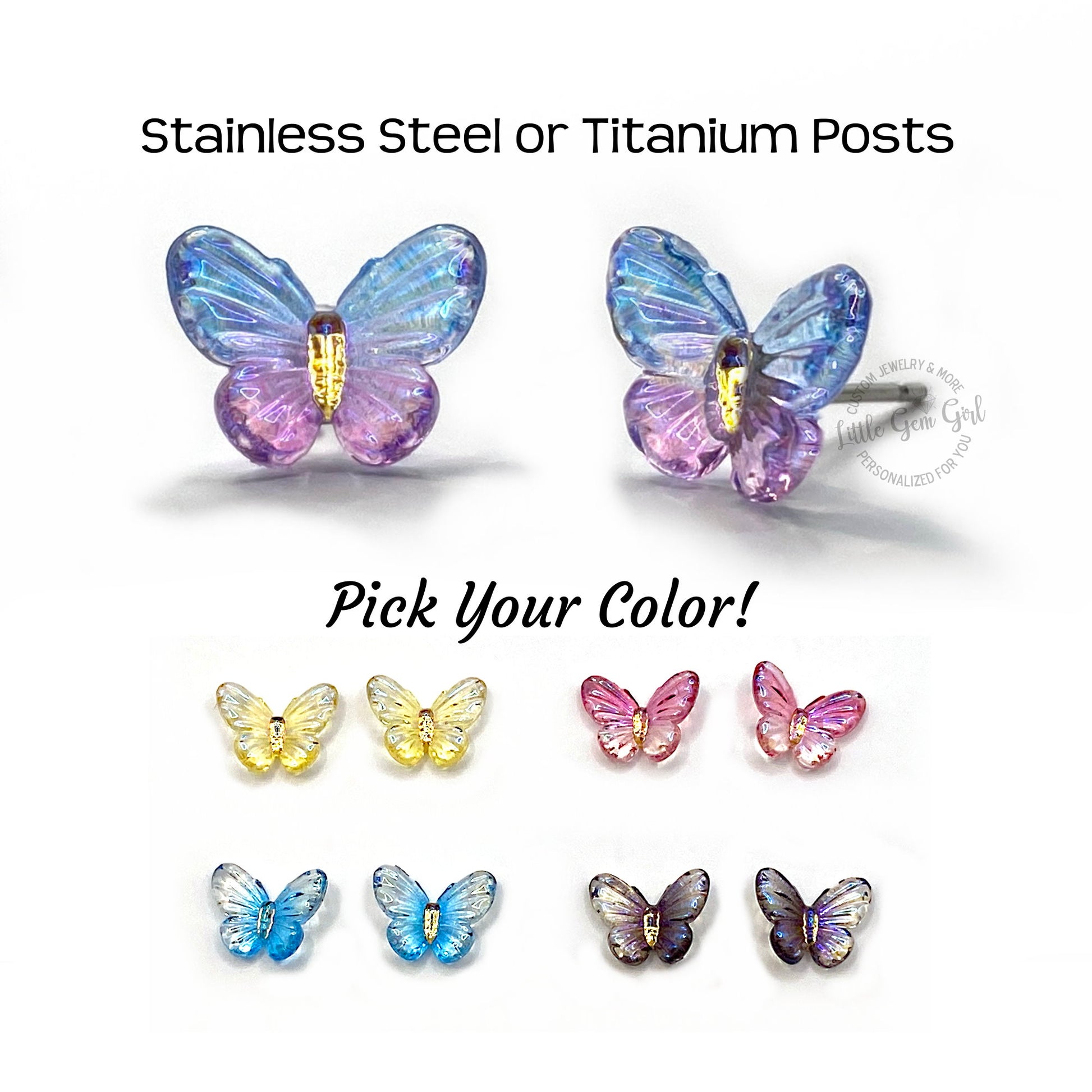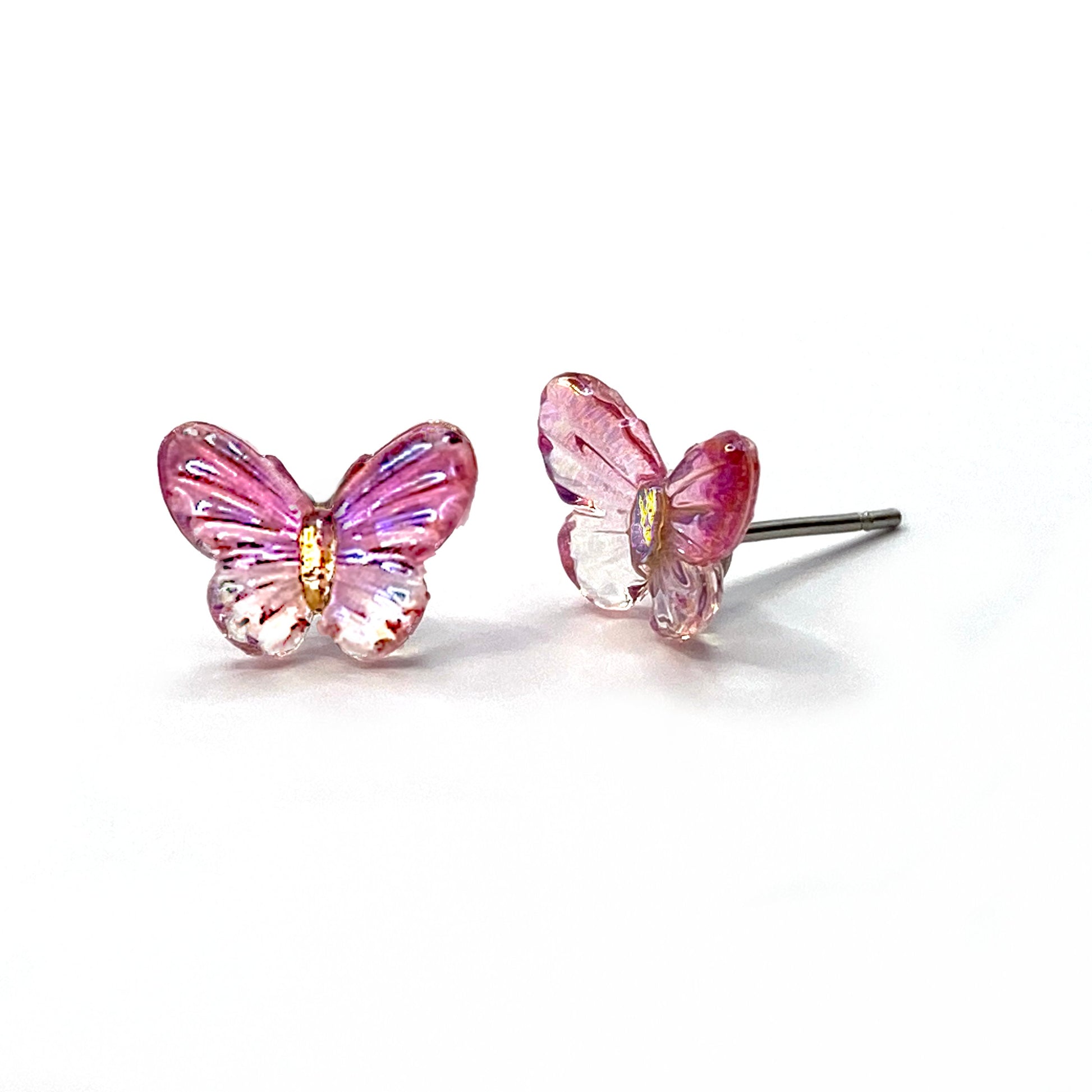 Tiny Butterfly Resin Stud Earrings (8×10mm) – Jewel Tone Rainbow Butterflies, Titanium or Stainless Steel Hypoallergenic Posts